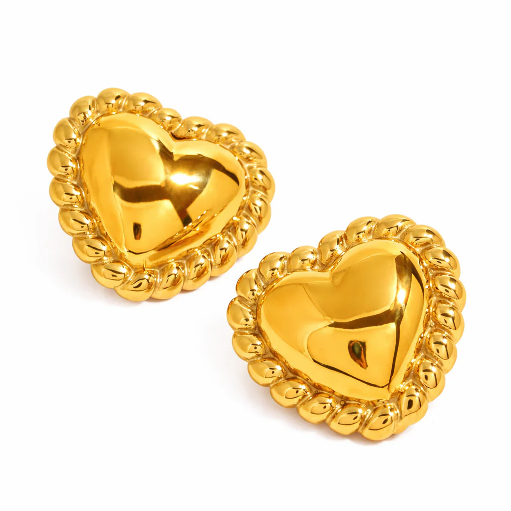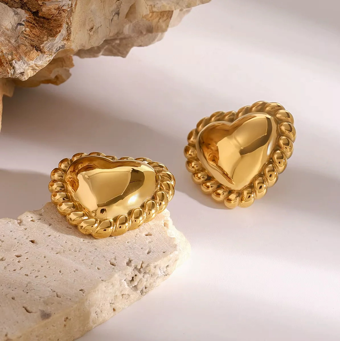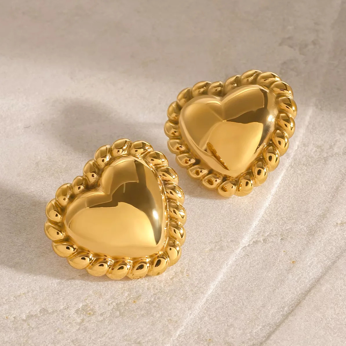 Draag je hart in je oren met deze charmante oorknopjes van roestvrij staal. Vervaardigd in een tijdloze hartvorm, zijn ze het perfecte accessoire voor elke dag dat een vleugje romantiek toevoegt aan elke outfit. Duurzaam, hypoallergeen en moeiteloos chic – want liefde moet vanuit elke hoek zichtbaar zijn.