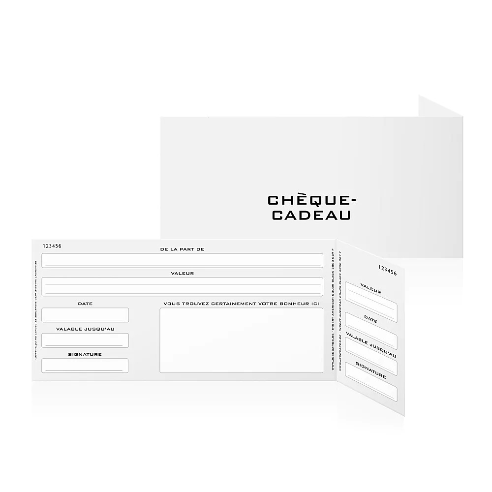 Vous préférez recevoir un chèque-cadeau dans un bel emballage ? Dans ce cas, indiquez dans les "Informations complémentaires" qu'il s'agit d'un cadeau. Votre chèque-cadeau sera envoyé le lendemain de votre commande ! À partir de 75 euros, il est envoyé gratuitement.