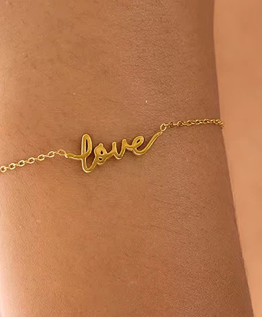 Draag je hart om je pols met deze charmante roestvrijstalen armband, waarop het woord 'liefde' prachtig is gegraveerd. Duurzaam, tijdloos en oneindig betekenisvol: het is het perfecte accessoire voor elke dag, dat lieve gevoelens uitstraalt zonder een woord te zeggen. Of je jezelf nu verwent of iemand speciaals een cadeau geeft, dit sieraad viert genegenheid op de meest stijlvolle manier mogelijk.